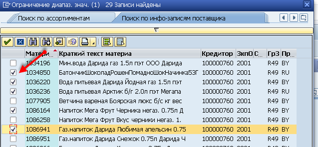 Напротив нужных наименований товара, необходимо, щелкнув мышью по пустым квадратикам, проставить галочки: