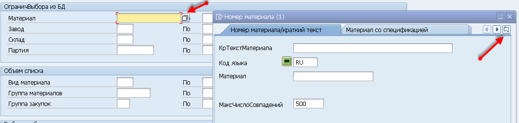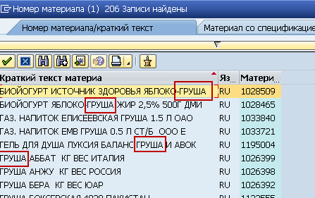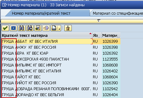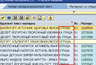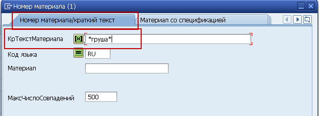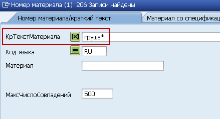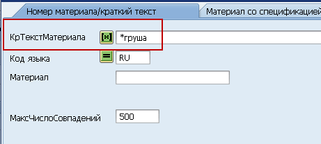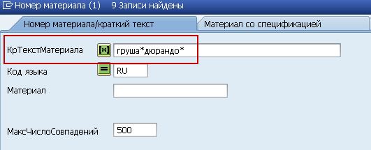В списке критериев для поиска выбираем «Номер материала/краткий текст»