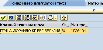 В данном окне в поле «КрТекстМатериала» необходимо ввести наименование товара, при вводе наименования слово нужно выделить **