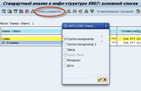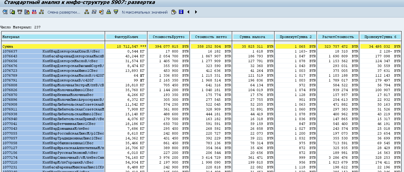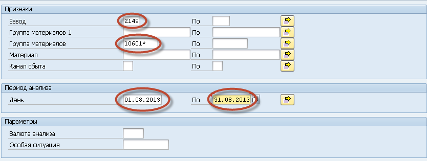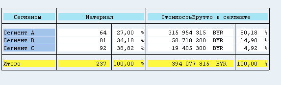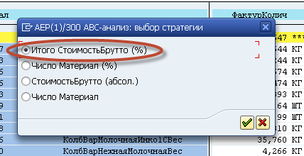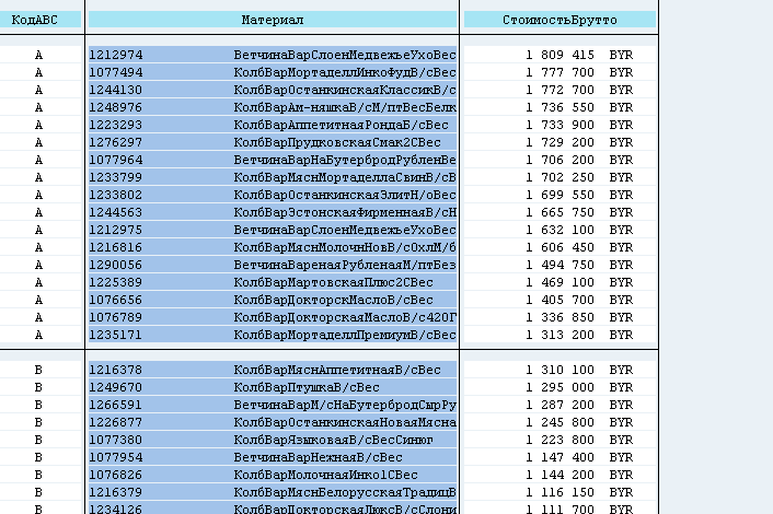 Для того, чтобы провести АВС-анализ ассортимента воспользуемся транзакцией Z_OBOROT.