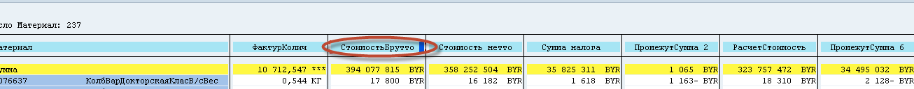 Далее выделяем столбец для анализа, щелкнув левой кнопкой мыши по заголовку (это могут быть столбики СтоимостьБрутто – если анализ по товарообороту или ФактурКолич – если анализ по товарооборачиваемости):