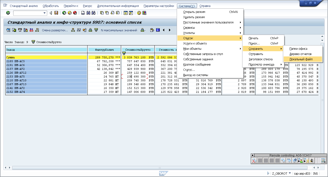 Чтобы распечатать данные результаты необходимо нажать на Система (Y) – Список – Сохранить – Локальный файл.