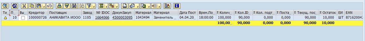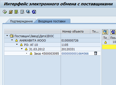 Для обработки Уведомления переходим на закладку Входящие поставки: