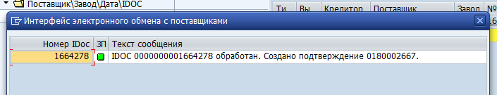 После удачной обработки IDOC выводится сообщение: