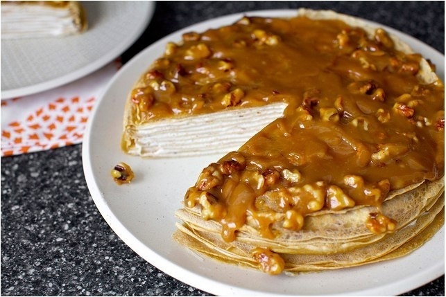 Нанесите начинку между каждым блином, остальной крем нанесите поверх торта.