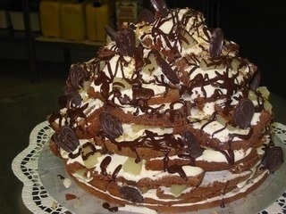 4. Каждый кусочек смазываем кремом и укладываем горкой, каждый слой