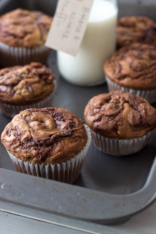 Нагрейте духовку до 180c. Муку, соду и разрыхлитель смешайте. В отдельной миске смешайте банановое пюре и сахар. Вбейте яйцо, добавьте масло и ваниль. Постепенно всыпьте мучную смесь и перемешайте до однородной массы. Введите нарубленные орехи и снова перемешайте. Разлейте тесто по приготовленным заранее формочкам на 3/4, сверху выложите по чайной ложке нутеллы и аккуратно перемешайте зубочисткой. Выпекайте 20-25 минут.