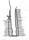 Пользуясь редкой расческой, расчешите шерсть на плюсне в две стороны: вперед и назад. Заднюю прядь волос подстригите по вертикали. Переднюю подровняйте почти по прямой, двигаясь от лапы к внутреннему уголку скакательного сустава.