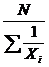 Аналогично формула взвешенной средней гармонической величины, которая имеет следующий окончательный вид через частоты или через доли