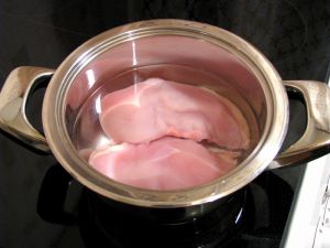 Куриное филе отварить до готовности (варить 20-25 минут после закипания).