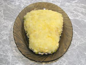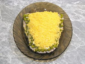 Повторюсь - таким образом можно украсить любой салат. Я привела лишь пример.