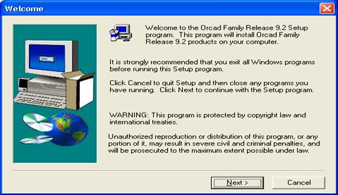 Дистрибутивный компакт-диск системы OrCAD 9.2 имеет средства Autorun для автоматической загрузки начальной заставки программы установки (рис. 1.1). В ней предлагаются следующие варианты: