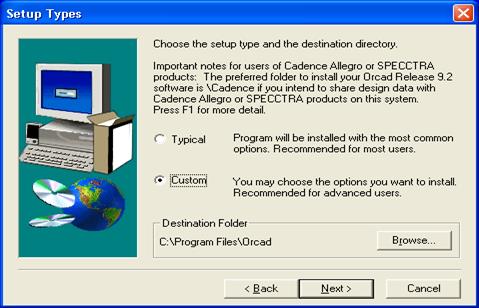 Рис. 1.3. Выбор режима установки системы OrCAD