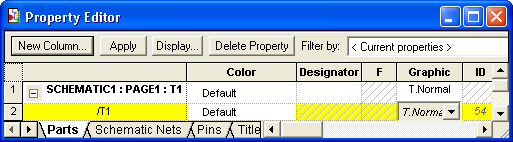 Свойства (атрибуты) одного или нескольких компонентов схемы просматриваются и редактируются с помощью Property Editor, вызываемого по команде Edit>Properties (активизируется также двойным щелчком курсора на изображении символа компонента или из всплывающего меню, открываемого щелчком правой кнопки мыши). Просмотр электронных таблиц свойств объектов проекта разных типов выполняется по командам Edit>Browse>Parts, Nets менеджера проектов (см. рис. 2.14). Перед просмотром электронной таблицы пользователь должен выбрать тип объектов: