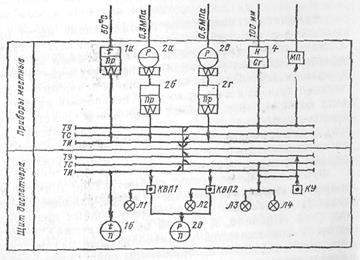 Методические рекомендации: В системах технологического контроля и управления часто применяют комбинированные и комплексные устройства, например: комбинированные измерительные и регулирующие приборы, машины централизованного контроля, полукомплекты телемеханики (рис. 5) устройства телевидения и т. п.