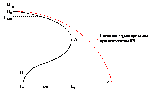 Рис. 4.27 Внешняя характеристика генератора постоянного тока параллельного возбуждения
