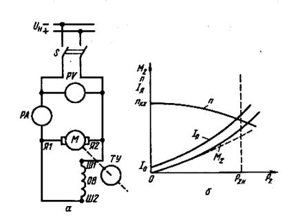 называется мягкой. Пунктирными линиями характеристик показаны нагрузки, при которых двигатель может пойти “в разнос“.