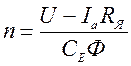 Из вышеприведенной формулы видно, что при постоянном напряжении U и постоянном сопротивлении цепи якоря Rя частота вращения n меняется, так как появляется падение напряжения в цепи якоря