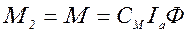 При значительных нагрузках, то есть при сильном насыщении стали, магнитный поток можно считать постоянным, тогда момент на валу пропорционален току якоря
