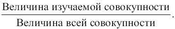 Относительные величины структуры, обычно называемые удельными весами, рассчитываются делением определенной части целого на общий итог, принимаемый за 100 %. У этой величины есть одна особенность – сумма относительных величин изучаемой совокупности всегда равна 100 % или 1 (в зависимости от того, в чем она выражается). Относительные величины структуры применяются при изучении сложных явлений, распадающихся на ряд групп или частей, для характеристики удельного веса (доли) каждой группы в общем итоге.