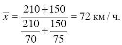 Например, пусть известно, что автомобиль прошел первые 210 км со скоростью 70 км/ч, а оставшиеся 150 км со скоростью 75 км/ч. Определить среднюю скорость автомобиля на протяжении всего пути в 360 км, используя формулу средней арифметической, нельзя. Так как вариантами являются скорости на отдельных участках xj = 70 км/ч и Х2 = 75 км/ч, а весами (fi) считаются соответствующие отрезки пути, то произведения вариантов на веса не будут иметь ни физического, ни экономического смысла. В данном случае смысл приобретают частные от деления отрезков пути на соответствующие скорости (варианты xi), т.е. затраты времени на прохождение отдельных участков пути (fi / xi). Если отрезки пути обозначить через fi, то весь путь выразиться как fi, а время, затраченное на весь путь, – как? fi / xi,. Тогда средняя скорость может быть найдена как частное от деления всего пути на общие затраты времени: