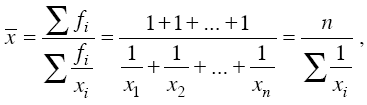Если при использовании средней гармонической веса всех вариантов (f) равны, то вместо взвешенной можно использовать простую (невзвешенную) среднюю гармоническую: