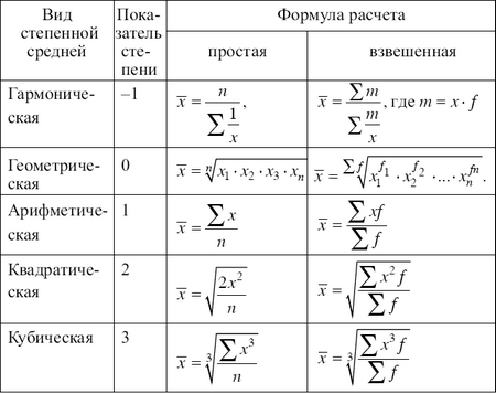 где – средняя величина; – индивидуальное значение; n – число единиц изучаемой совокупности; k – показатель степени, определяющий вид средней.