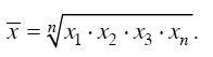 Средняя геометрическая применяется, когда имеется n коэффициентов роста, при этом индивидуальные значения признака представляют собой, как правило, относительные величины динамики, построенные в виде цепных величин, как отношение к предыдущему уровню каждого уровня в ряду динамики. Средняя характеризует, таким образом, средний коэффициент роста. Средняя геометрическая простая рассчитывается по формуле
