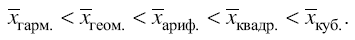 При использовании одних и тех же исходных данных, чем больше k в общей формуле степенной средней, тем больше средняя величина. Из этого следует, что между величинами степенных средних существует закономерное соотношение: