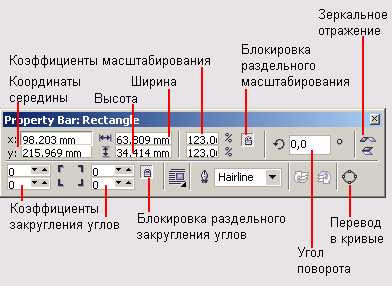 Теперь узнаем, как выглядит панель атрибутов для прямоугольников (рис.5) и какие элементы управления на ней расположены.