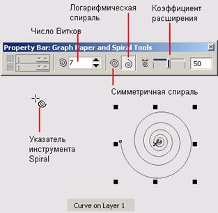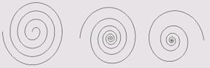 В CorelDRAW представлены два вида спиралей: симметричные (которые в математике называются архимедовыми) и логарифмические. Для первых характерно то, что расстояние между двумя смежными витками спирали, измеренное вдоль радиуса, проведенного из ее центра, одинаково для всей спирали. В логарифмической спирали это расстояние равномерно увеличивается пропорционально некоторой константе — коэффициенту расширения спирали.