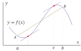 Рис. 6. Теорема Лагранжа устанавливает условия существования хотя бы одной точки c, в которой касательная к графику функции