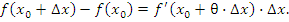 Равенство (2) дает точное значение для приращения функции при конечном значении приращения аргумента и называется формулой конечных приращений. Единственным недостатком этой замечательной формулы является присутствие в ней неопределенного числа θ.