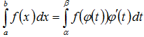 ТЕОРЕМА. Пусть функция φ(t) имеет непрерывную производную на отрезке [α,β], а=φ(α), в=φ(β) и функция f(х) непрерывна в каждой точке х вида х=φ(t), где t