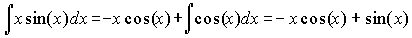 Положим u = x, dv = sin(x)dx. Тогда du = dx, v = -cos(x). Отсюда