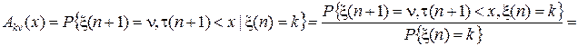 В силу определения (3) элементы Ak n(x) полумарковской матрицы определяют условные двумерные распределения вероятностей, задание которых вызывает некоторые затруднения, поэтому достаточно полезной является следующая мультипликативная форма этих элементов