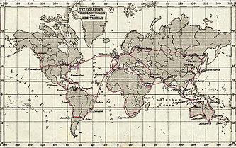 В 1858 г. была установлена трансатлантическая телеграфная связь. Затем был проложен кабель в Африку, что позволило в 1870 году установить прямую телеграфную связь Лондон — Бомбей (через релейную станцию в Египте и на Мальте).