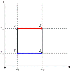 Поэтому цикл Карно удобно представить в координатах T и S (температура и энтропия).
