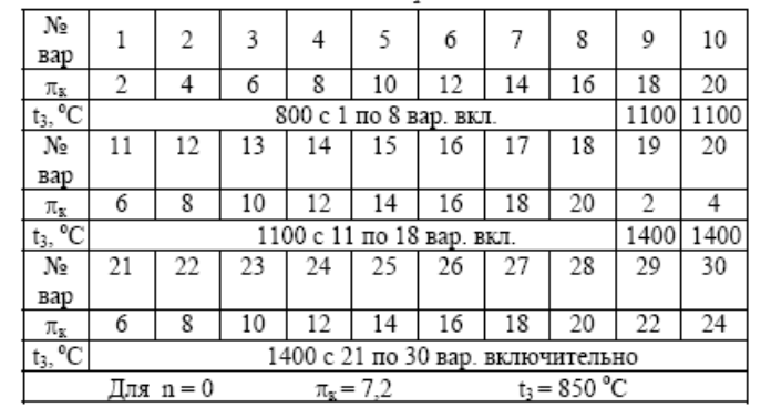 газов перед турбиной t3– приведены по вариантам в таблице 11.2;