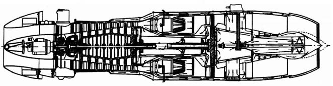 бины, выхлопного сопла и редуктора Ьдв. = 3677 мм