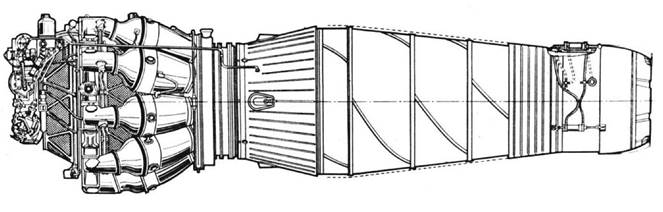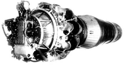 В октябре 1946 г. все работы в этом направлении были переведены на строящийся в г Куйбышев завод №2. Доктор Шайбе возглавил ОКБ-1, в котором работали инженеры фирмы Junkers. В 1945 г. ОКБ В.Я.Климова занялось внедрением в производство трофейного немецкого турбореактивного двигателя JUM0-004 под индексом РД-10. Двигатель имел осевой восьмиступен- чатый компрессор, камеру сгорания с шестью индивидуальными жаровыми трубами, расположенными по окружности, и одноступенчатую турбину. Регулирование тяги осуществлялось единым рычагом за счет изменения подачи топлива и площади выходного сечения сопла путем перемещения в сопле подвижного конуса. В качестве основного топлива использовался керосин, для запуска двигателя применялся бензин. Раскрутка турбины при запуске