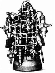 Снабжен неподвижными рулевыми соплами, работающими на генераторном газе. Для наддува топливных баков и управления агрегатами автоматики ДУ используется гелий, хранящийся в сферических баллонах. Рп = 1,918 тс (18,8 кН) 1п = 3070 м/с t = 53 с рк = 9,22 МПа Km = 1,84 Мдв. = 42 кг Эдв. = 500 мм Ьдв. = 700 мм