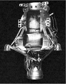 ЖРД при посадке КА на Луну работает вначале в номинальном режиме, затем на малой тяге (245 Н), обеспечиваемой рулевыми соплами при выключенной камерой. Рп = 4,643 тс (45,5 кН) 1п = 287 с 1з = 117 с t = 43 с