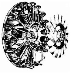 Направление вращения вала воздушного винта (смотреть со стороны двигателя на винт) - против часовой стрелки Мдв. = 215 кг Эдв. = 985 мм Ьдв. = 1150 мм
