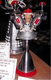 Предназначен для использования в системах управления движением спутников серии "Космос". Рабочие тела - тетраоксид азота и НДМГ Рп = 0,0051 тс (50 Н) Удельный импульс в непрерывном режиме 2500 м/с