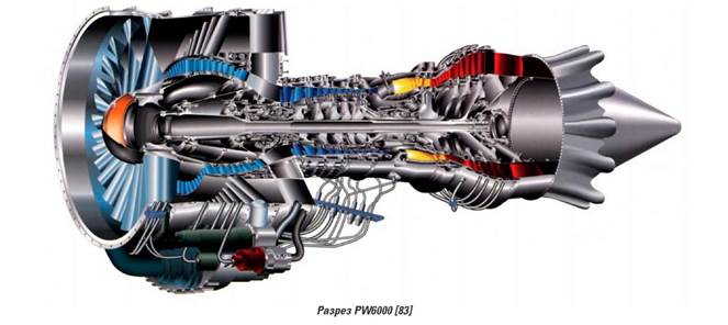 2001 г. Первый полет самолета Airbus A318 - сентябрь 2001 г. Сертификация FAR/JAR 25 - август 2002 г. Конструктивно двигатель PW6000 состоит из одноступенчатого вентилятора, четырехступенчатого компрессора низкого давления, пятиступенчатого компрессора высокого давления, одноступенчатой турбины высокого давления и трехступенчатой турбины низкого давления, сегментированной, низкоэмиссионной камеры сгорания нового поколения (Floatwall™). В двигателе PW6000 воплощены последние разработки компании Pratt & Whitney в области материалов, аэродинамики, конструкции ВРД. Значительно сокращено количество деталей, которые имеют небольшой ресурс и должны часто заменяться в процессе эксплуатации. Сокращено также количество аэродинамических поверхностей. Двигатель оснащен системой полного цифрового электронного управления (FADEC) нового поколения. Покрытия выполнены из новейших керамических материалов.