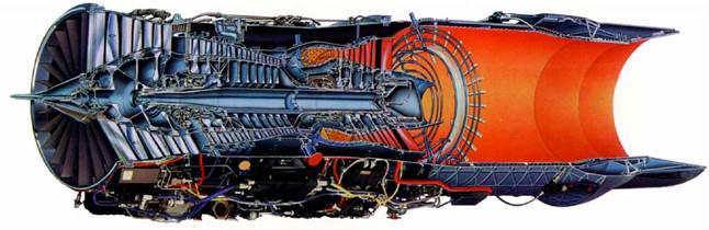 F100 - это семейство форсированных ТРДД для военной авиации - истребителей Boeing F-15 и Lockheed Martin F-16. Выпущено более 6000 двигателей, общий налет которых с 1974 г. составляет более 11 млн.лет- ных часов.