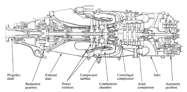 Конструктивная схема PT6 мощностью 1090...1940 л.с. [87]