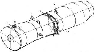 1 - воспламенитель; 2 - топливный заряд; 3 - корпус; 4 - ТЗП; 5 сопло; 6 - узел крепления двигателя