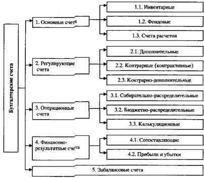 Рис. 1. Классификация бухгалтерских счетов по назначению и структуре показателей